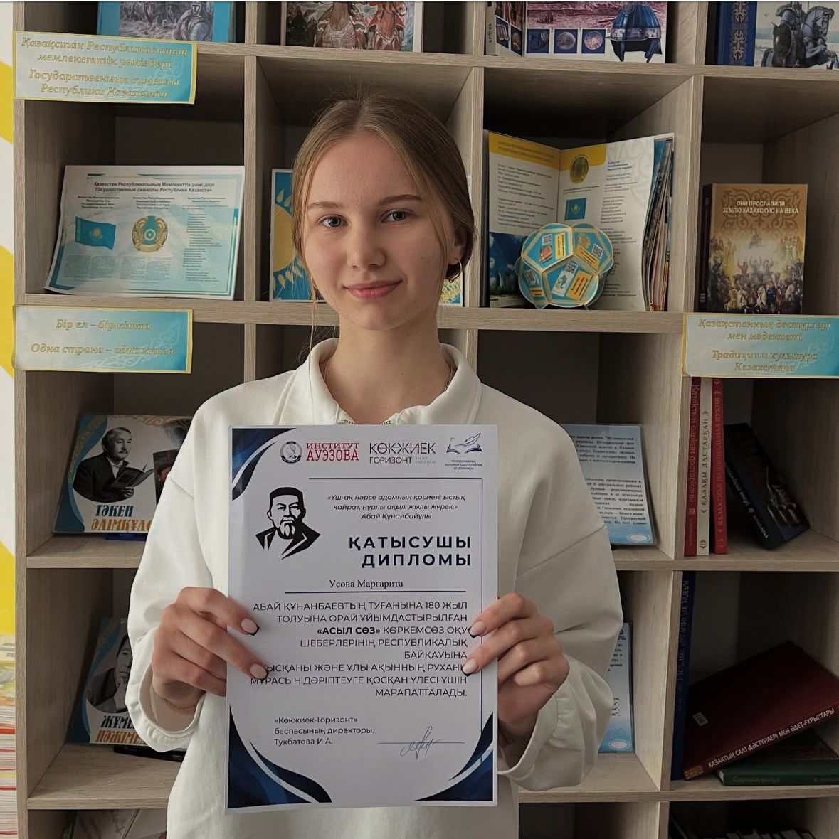 🥈 Тулепберген Малика, ученица 6А класса — 2 место.